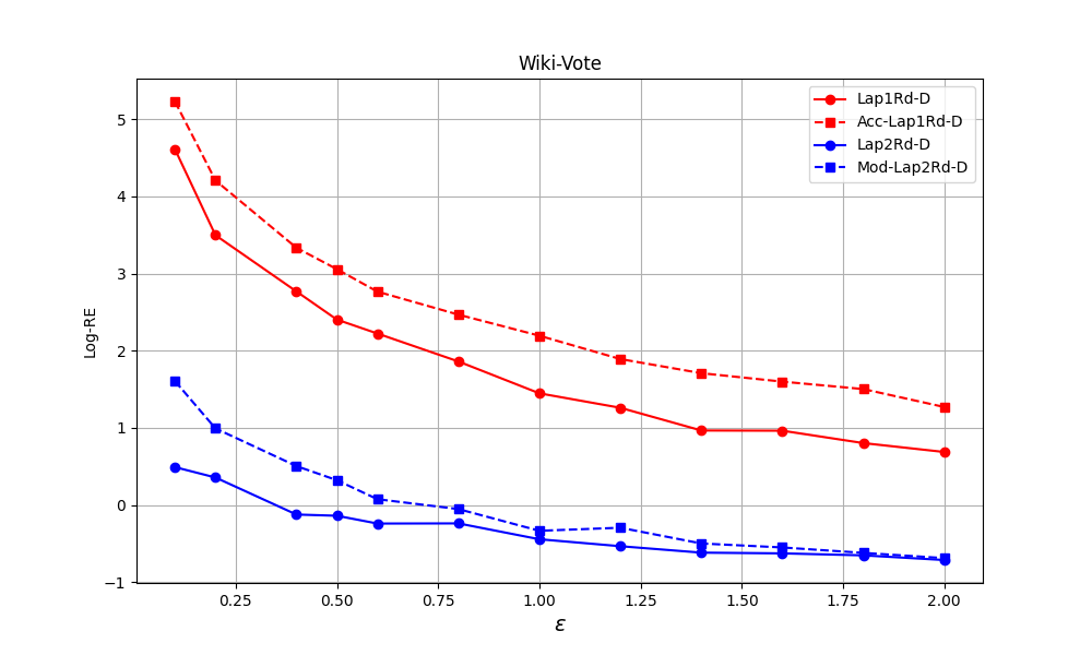 我们将差分隐私技术中的Laplace机制应用于图结构中,用以保护图的边隐私信息,并根据保护后的数据设计了4种算法,并给出了每个算法的理论安全和精度保证,最后查找数据库对每个算法进行实验,并于该领域当前最佳的算法进行对比。我们的算法在理论和实验上均有较大的进步。