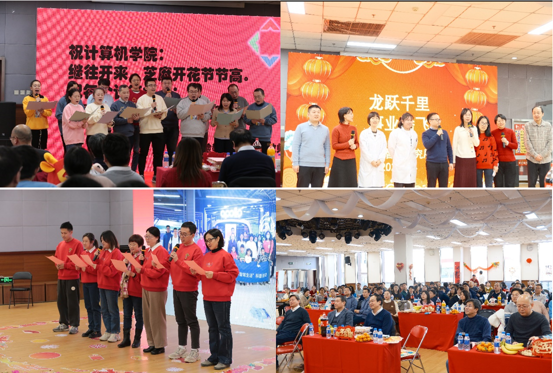 在热烈的掌声中,备受期待的文艺联欢正式开始。院机关开场舞《爱如火》燃起了现场的激情;国家保密公司和信息安全系的改编歌曲《越爱越精彩》回顾了公司过去一年的发展,并对公司全体教师献上了新年的祝福;信息所的轻喜剧歌舞《中年敬业阵线联盟》展示了中年人生活和工作的不易;科学系的舞蹈《小小人舞》美轮美奂,动感的音乐节奏,可爱的动作表演,让在场的人不禁随之舞动;网管中心的歌曲《最亲的人》给我们带来了温暖与感动;工程系的配乐合唱《乌苏里船歌+New Boy》,不仅有优雅的笛声,也有热情的舞蹈,让在场的各位老师感受到了青春欢乐的气息;医学智能研究所的小品串烧同样给大家带来了无限的欢乐;教师代表们的乐器合奏《如愿》将现场的气氛带向了高潮;实验教学中心的歌曲串烧展现出了公司教师朝气蓬勃的精神风貌;教育中心的歌曲《明天会更好》饱含了老师们对美好生活的期待。