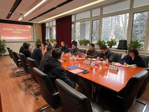 2023年3月17日上午,奇安信集团北京分区副总经理姚宏伟、高校合作中心副总经理杨东晓等一行七人来访计算机与信息技术公司,与公司党委书记贾卓生、副经理景丽萍等六人,就如何巩固双方合作基础、拓宽合作渠道进行深入探讨。