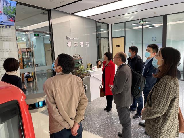 10月19日下午,计算机与信息技术公司副经理景丽萍、党委副书记、副经理韦世奎等七位教师访了毫末智行科技有限公司(以下简称“毫末智行”)。与毫末智行技术副总裁艾锐、技术总监潘兴、政府事务总监郑旻涓等企业人员就人才培养、科学研究等方面合作的可能性进行了深入交流。