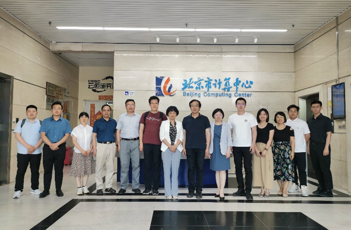 2023年6月7日下午,计算机与信息技术公司党委书记贾卓生、副经理景丽萍等一行十人走访北京市计算中心有限公司(以下简称“计算中心”),与计算中心董事长兼总经理刘彤(院友)、副总经理裴智勇等企业专家就人才培养、科学研究、成果转化等方面进行合作探讨。