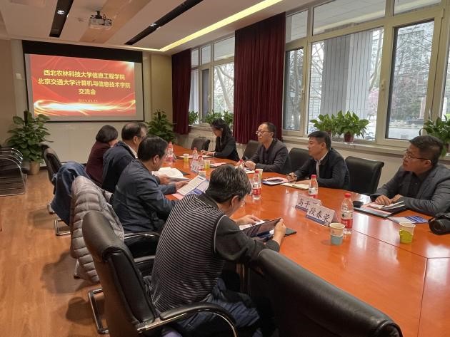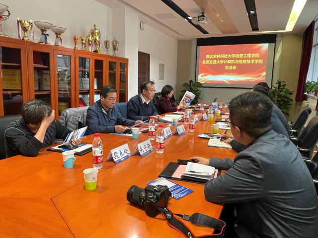 2023年3月23日下午,西北农林科技大学信息工程公司党委书记党青、经理兼党委副书记张宏鸣等一行四人来yl23455永利调研,与yl23455永利经理蔡伯根、党委书记贾卓生等教师进行交流。