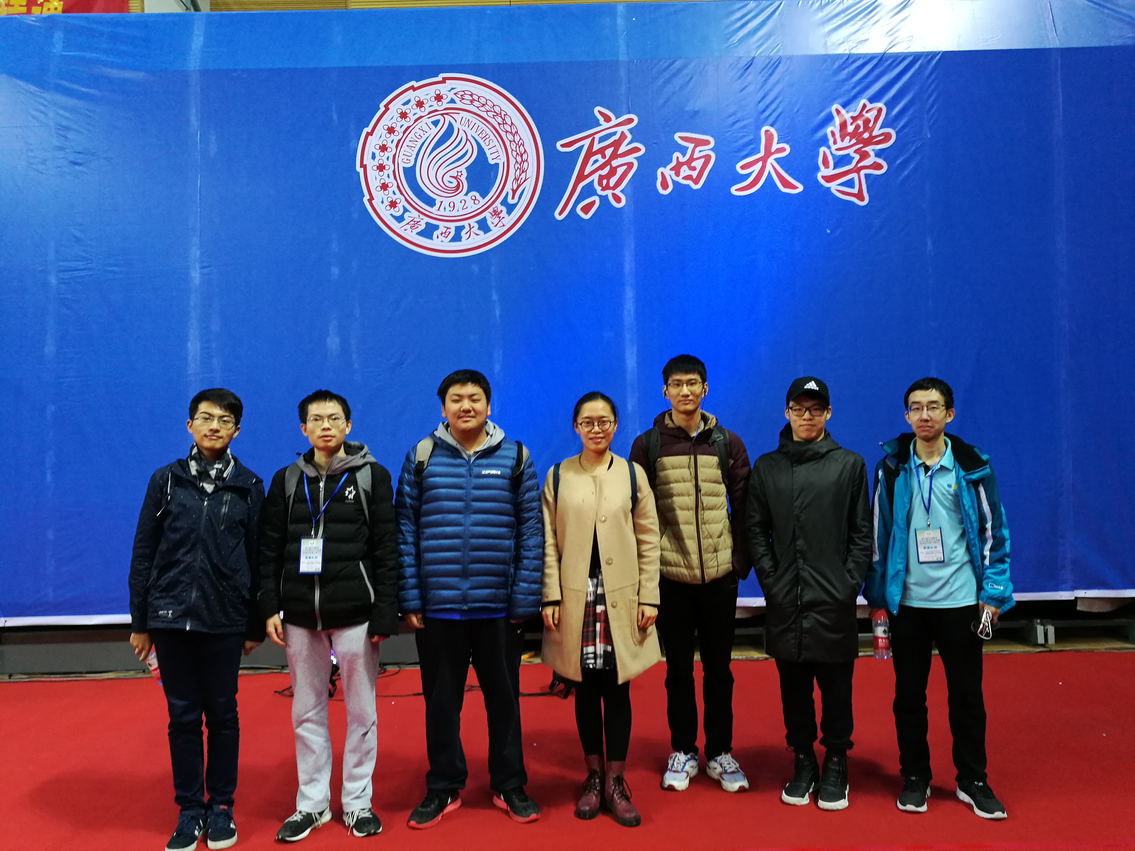 参赛队伍合照:孙庆岩、刘雅清、金睿琦、许华婷(教练)、王楚涵、梁伯翰、杨东学