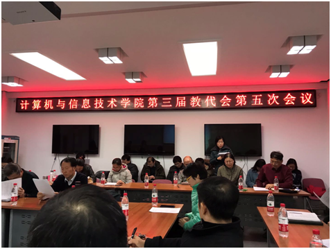 2017年12月22日上午9点,计算机与信息技术公司第三届教代会第五次会议在九教北307B会议室召开,39名教代会代表参加了会议,会议由杨晓晖书记主持。