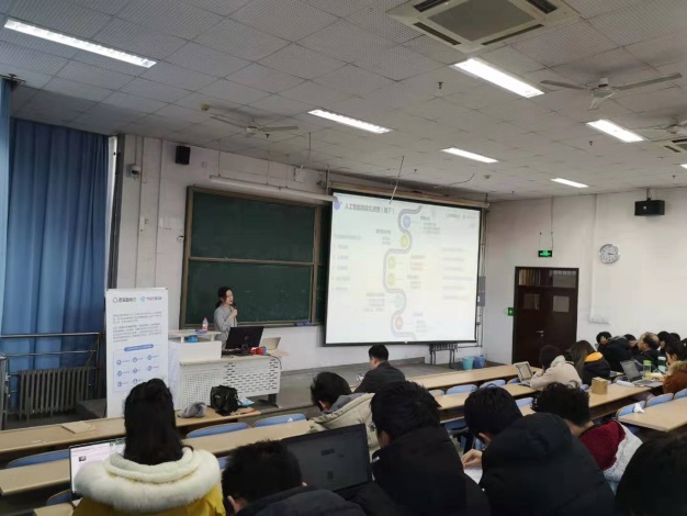 本次讲座邀请了百度云智公司产品经理王江天先生与张湘悦女士作为主讲人。王江天先生首先向同学们阐述了AI发展的黄金时代,介绍了开源深度学习平台,分享了人工智能在无人驾驶、人脸识别等多领域具体应用。随后张湘悦女士介绍了百度云智公司和百度开发者中心日常的运营活动,分享了AI相关的学习资源,引发了同学们热烈的反响。同时,讲座中也介绍了当前火热的人工智能无人驾驶技术的发展状况以及行业人才需求,对同学们的专业认知、专业学习和职业规划起到了指导和促进作用。