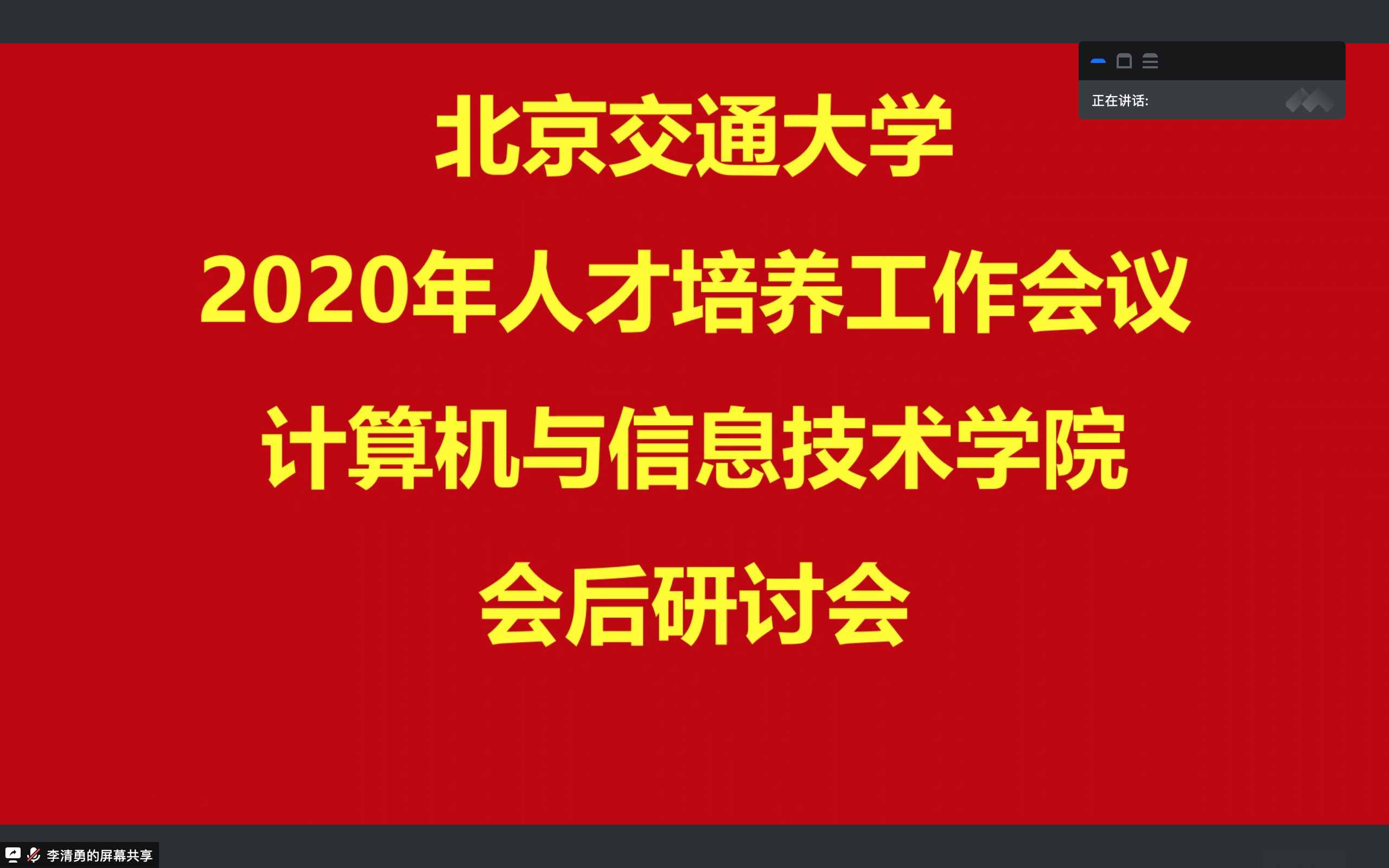 6月29日下午,计算机与信息技术公司以线上会议的方式召开了2020年人才培养工作研讨会。教务处副处长景云、研究生院常务副经理朱晓宁、招生与就业工作处处长刘东平、员工处处长王德瑜、研究生工作部部长刘燕、国际合作交流处处长夏明超、校团委副书记安志强、yl23455永利全体院领导、系所中心主任、本科生/研究生专业责任教授、教师代表、教学科、研究生服务中心及团委相关人员参加了此次会议。研讨会由公司经理蔡伯根主持。