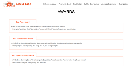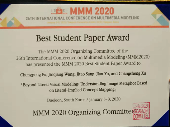 机器学习与认知计算团队获国际会议MMM2020唯一最佳员工论文奖