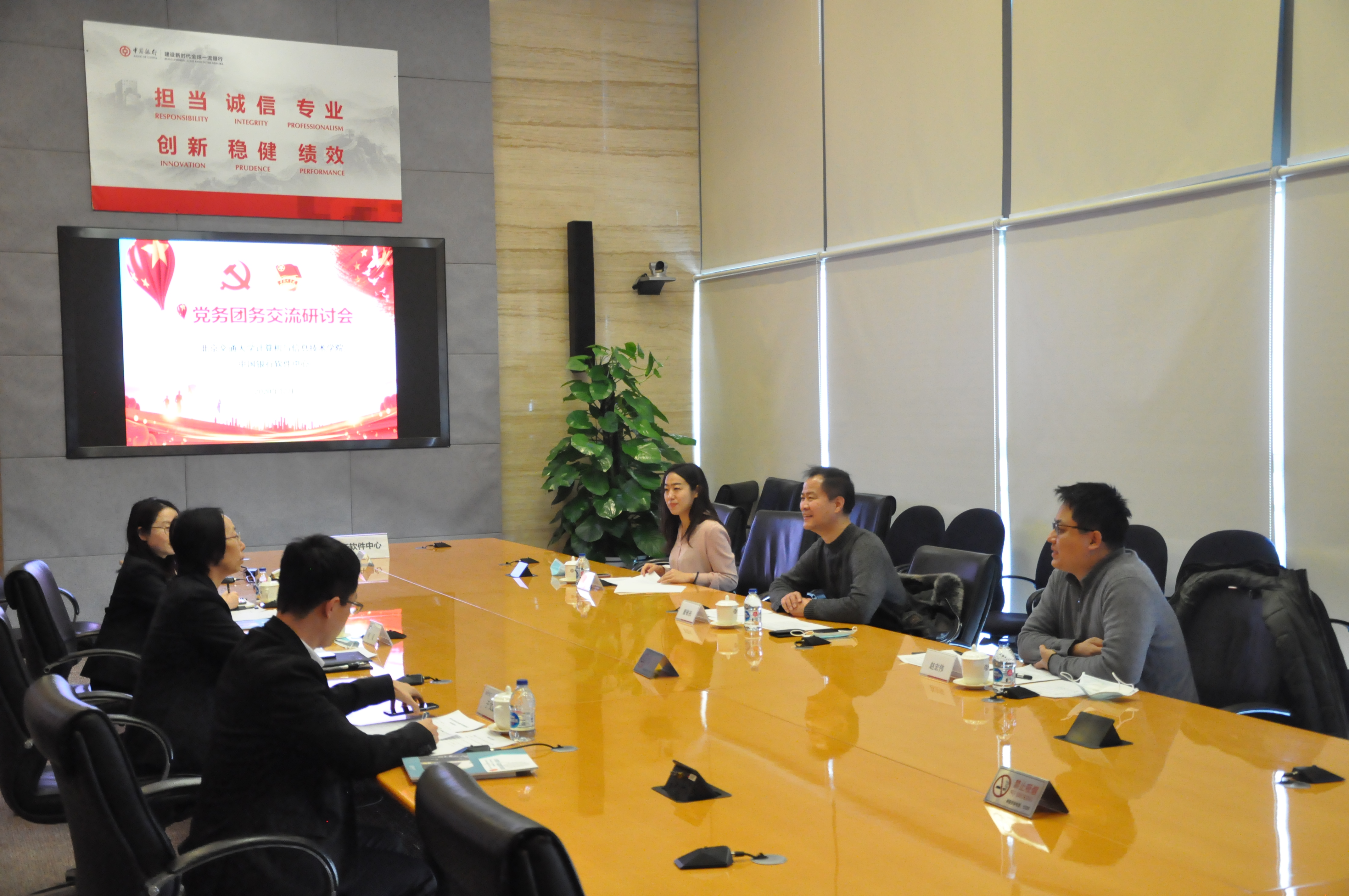 2020年12月31日下午,yl23455永利副书记兼副经理董敬祝、研究生服务中心主任赵宏伟、研究生辅导员周艺走访了中国银行软件中心,与中国银行软件中心党务工作部主管、团委书记何灵等相关负责人就联合党建、团建、校企合作等方面进行了深入交流。