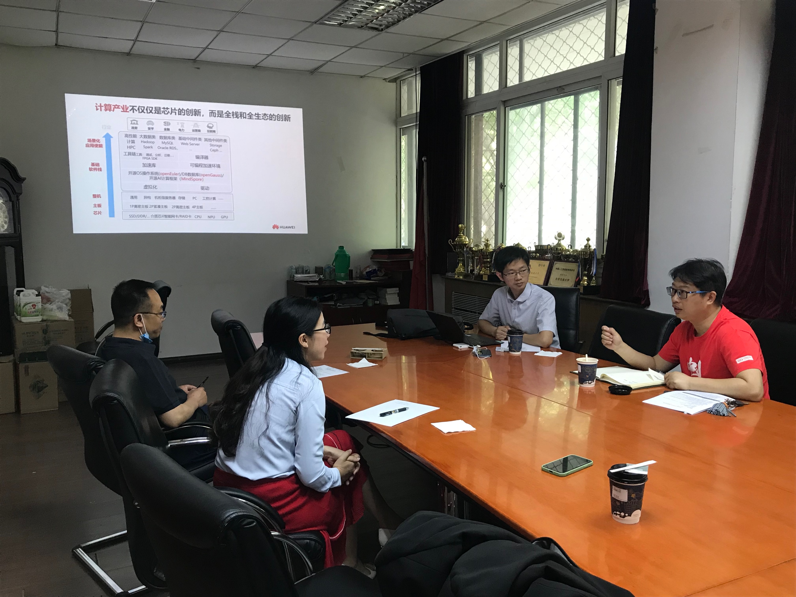 研讨会开始前,熊轲副经理首先对李春梅经理和李国军总工的到访表示了热烈欢迎。李春梅经理结合华为的战略定位和人才需求、李国军总工结合华为鲲鹏产品,详细介绍了华为近期发布的鲲鹏众智计划。该计划与昇腾众智计划一起,包含动态更新的任务包,提供丰厚的激励奖金,目的是汇聚各界的智慧和力量,共同开发加速库、工具插件、算子、网络模型,加速基础软件创新突破,共促多样性计算产业发展和生态繁荣。熊轲副经理指出华为的“智能基座”项目和鲲鹏众智计划与公司正在推进的计算机专业基础课程的建设相吻合,众智计划提供的项目需求,可以进一步激活这些专业基础课的“教与学”。期间,双方还就课程建设、人才培养、众智计划项目落地等细节展开了讨论。