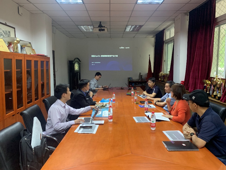 会议由熊轲副经理主持,对百度Apollo团队的到访表示热烈的欢迎。韦志勇介绍了百度Apollo-智能网联教育产业,期望在新基建时代背景下,以智能网联、交通强国战略为导向,通过产教融合新模式,深化“产学研用”一体化,全力支持高校人才培养,打造教育行业合作标杆。蔡伯根经理从公司人才培养方案出发,梳理了人才培养改革创新的需求,希望能够引入百度智能网联教育产业的资源,在课程建设及实习实训等方面有所建树,强化升级公司的实践教学建设。与会人员就自动驾驶、虚拟仿真等课程建设内容进行了积极的交流和探讨。