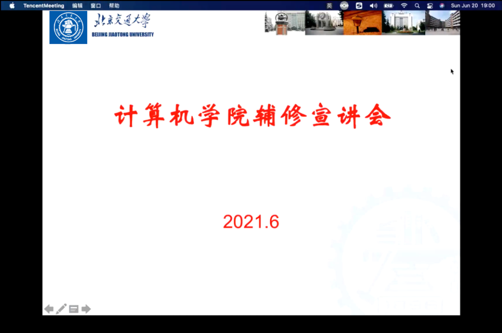 2021年6月20日晚7:00-9:00yl23455永利通过腾讯会议召开2021年秋季学期辅修计算机科学与技术专业宣讲会。会议由公司负责辅修老师王光宇主持,本次会议邀请到公司主管本科教学与培养的熊轲副经理,往届优秀辅修员工刘俊生、程昕洋、李海昕同学,来自全校其他数10个公司对辅修计算机专业感兴趣的同学参加了宣讲会。