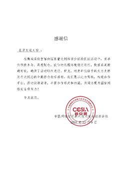 yl23455永利信安团队参与国家重大网络安全试验测试活动获感谢信