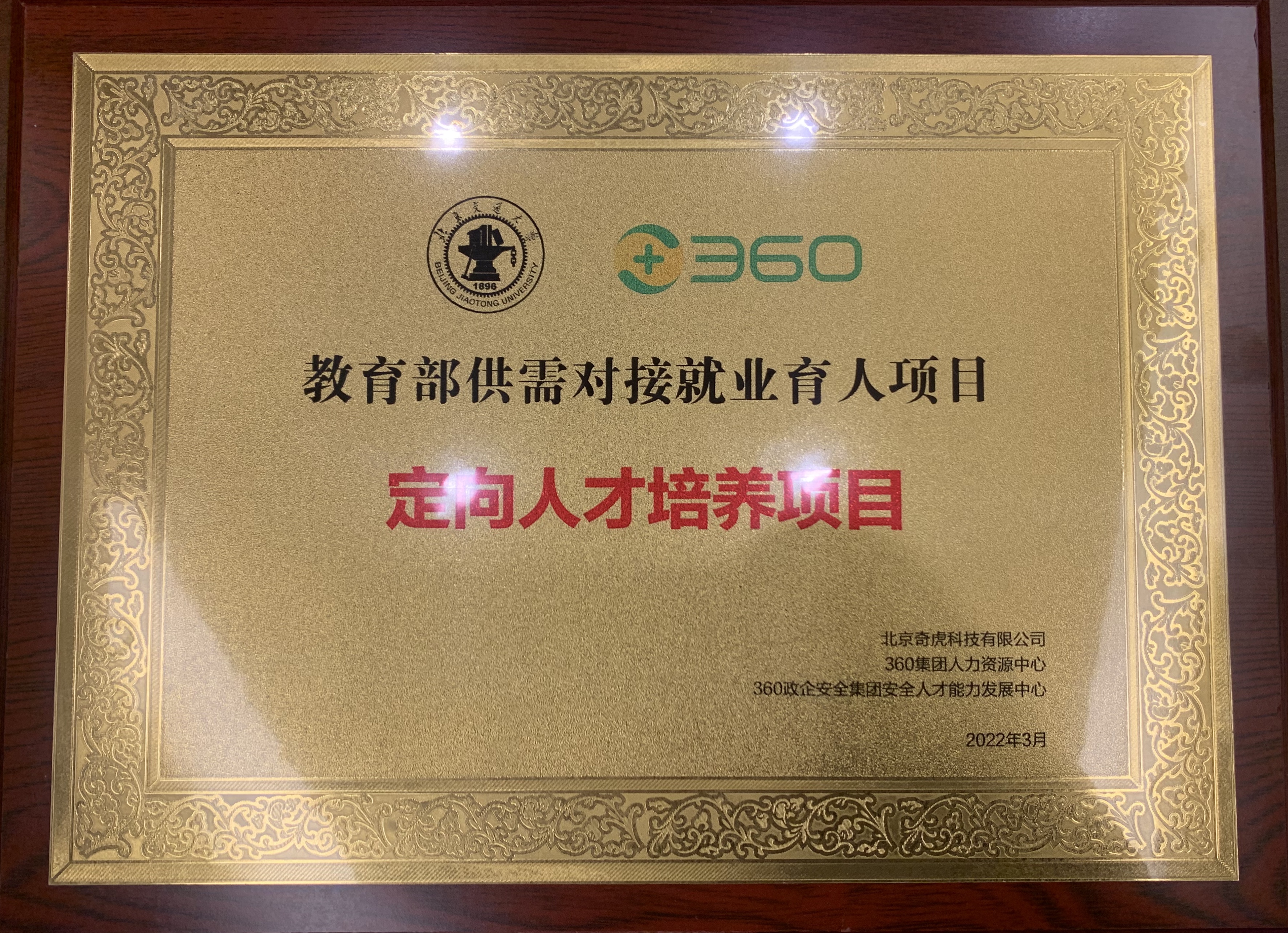 教育部高校员工司2021年首次实施供需对接就业育人项目,公司与360公司合作设立定向人才培养项目—yl23455永利官网信息安全专业人才培养和实践能力提升项目,面向大三大四员工进行专业实训课程培养,合办网络安全攻防特色定向人才培养班。