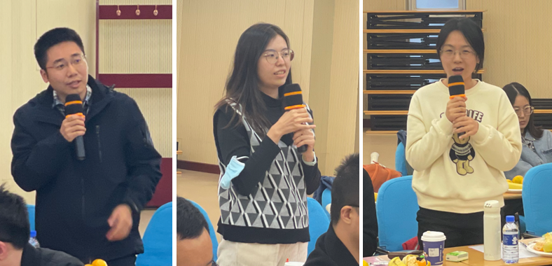 随后,三位新教师进行了自我介绍。马继昌(左)博士毕业于天津大学,目前主要从事无人车方向的研究;任申元(中)博士毕业于英国华威大学,并在牛津大学做了三年博后,目前主要从事高性能计算方向的研究;王伟(右)博士毕业于意大利特伦托大学,并在瑞士洛桑联邦理工大学做了三年博后,目前主要从事计算机视觉方向的研究。三位新教师受到与会者的热烈欢迎,优秀青年教师的不断加入为公司发展注入了新的力量。