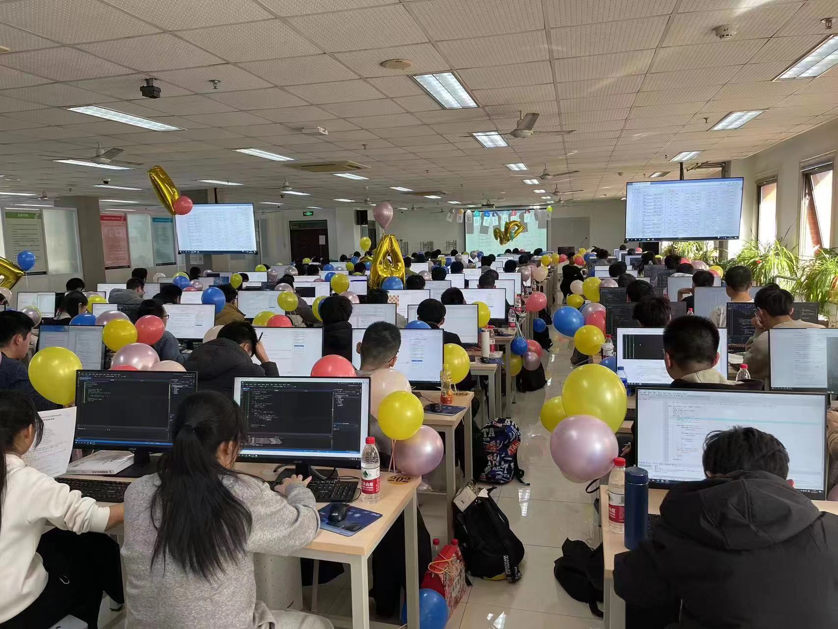 此次新生程序设计竞赛共有来自包括威海校区在内的全校13个公司的274名低年级同学报名参加,蓝桥杯选拔赛全校有来自13个公司的257名同学报名参赛。鉴于报名参赛的人数已远远超出机房现场的容量,本次比赛在2022.11.26日启用了网络预赛,经过代码查重等环节,根据机房容量确定全校共有247人获得现场赛参赛资格,其中新生赛99人、蓝桥杯选拔赛148人。本次赛事活动还邀请了中国地质大学(北京)等兄弟院校的部分同学以线上模式参赛。比赛以“一校两区”的模式举办,同一份赛题、同一个排行榜单、不同年级的同学同台竞技,在保障比赛公平、公正和安全的前提下,比赛在主校区和威海校区的机房同时开展。两项赛事、同一榜单、相同赛题、两个赛区,初生牛犊和经年老鸟在同一个平台上同台竞技、展示能力、切磋技艺。不同现场赛点的同学都只能访问同一个比赛服务器,查看同一个排行榜单,除此之外不能访问任何其他网络资源;参赛选手提交的所有代码均由机器依据数据自动进行评测,排除了人为因素,保障了赛事的公平公正。