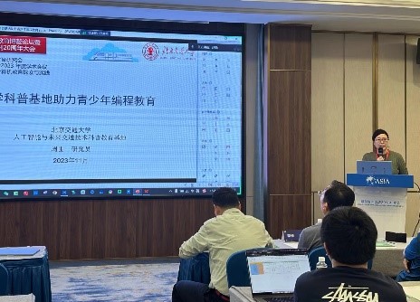 大会同时举行多项专题论坛活动,在青少年计算机教育探索与实践专题论坛中,公司周围老师做《大学科普基地助力青少年编程教育》报告,介绍了公司“人工智能与未来交通技术科普教育基地”的建设历程和在青少年AI教育方面的探索实践,引起了参会代表对科普基地的广泛关注。