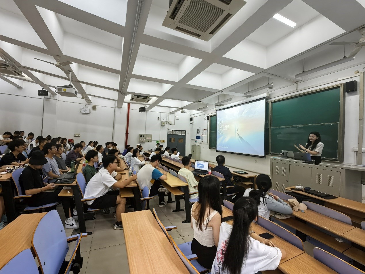百度高校合作部经理张小诗代表百度公司向全体同学做了《AI时代下的百度与人才培养》报告,让同学们从百度使命:用科技让复杂的世界更简单,到百度当前的科技领域和人才培养模式有了一个清晰的全面认识。