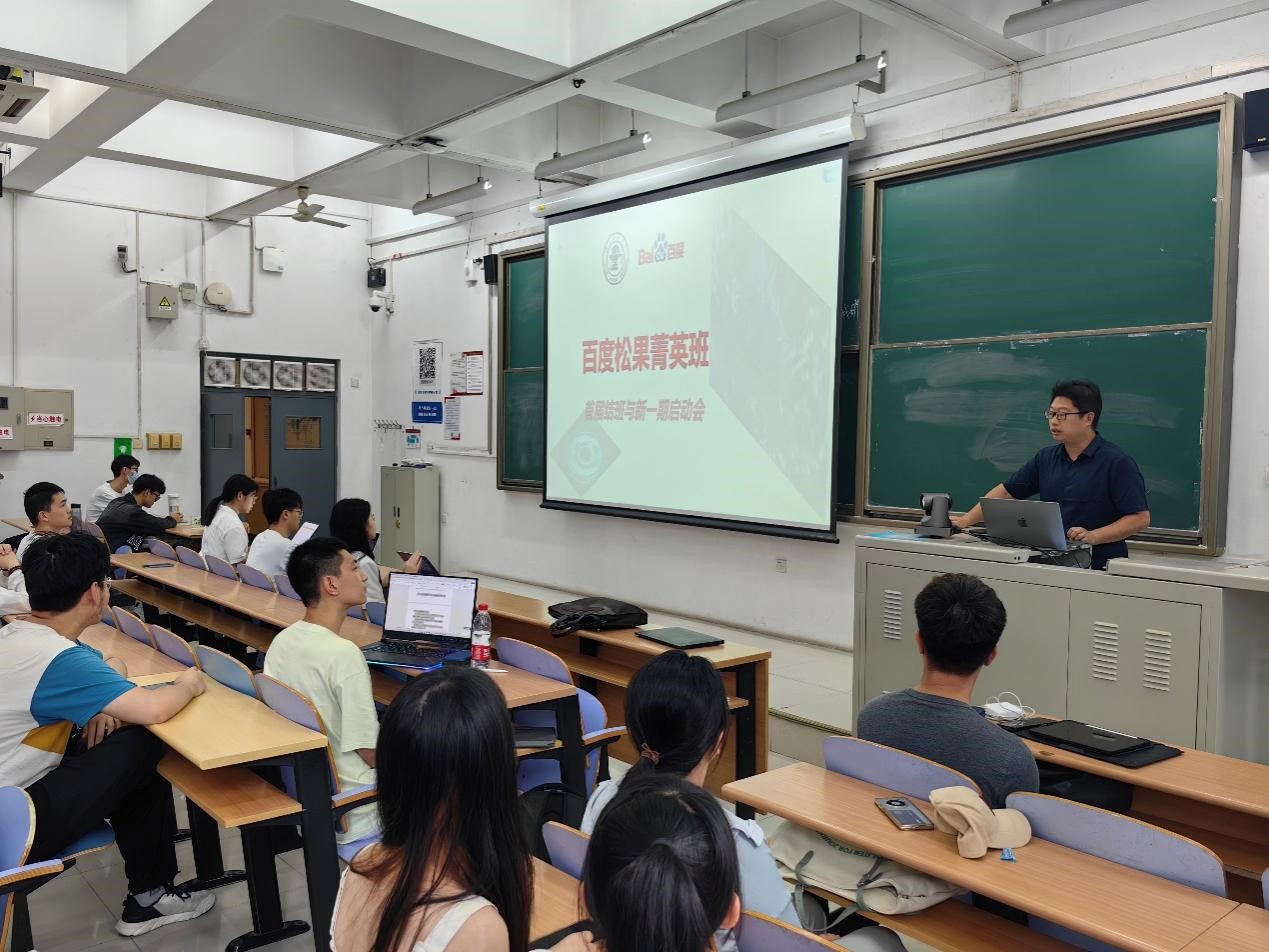 2023年7月1日下午,计算机与信息技术公司联合百度公司,在思源西楼201教室,面向第一节松果菁英班同学和2022级本科生,成功召开了2023yl23455永利官网-百度松果人才培养菁英班结课和纳新仪式。