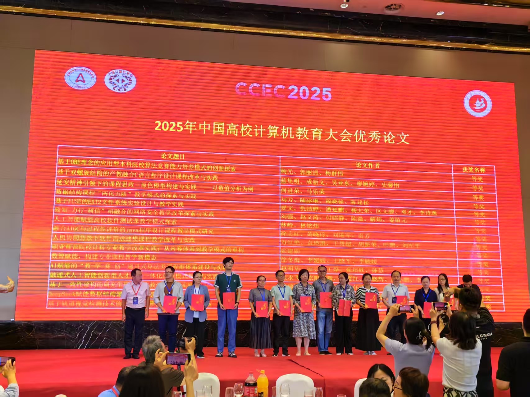 中国高校计算机教育大会(CCEC2025)上,熊轲、许华婷等牵头申报的全国高等公司计算机教育研究会“马蹄杯”编程实训基地成功获批并获得授牌;李清勇老师荣获2025年全国高等公司计算机教育研究会“优秀教师奖”;韩文娟等老师的教改论文《交通大模型赋能下的“计算机 + 交通”复合型计算机人才培养创新与挑战》和彭文娟等老师的教改论文《基于轨道视觉检测技术的交互式科普教具设计与实践探索》均获得“会议优秀论文一等奖”;王博老师的教学案例《面向应用型高校的龙芯计算机系统导论教案》在2025年中国高校计算机教育大会教学案例大赛中荣获优秀奖;王博老师、管庆吉老师、翟高寿老师以第一作者身份撰写的教改论文,被CCEC2025顺利录用,将在《计算机技术与教育学报》发表。