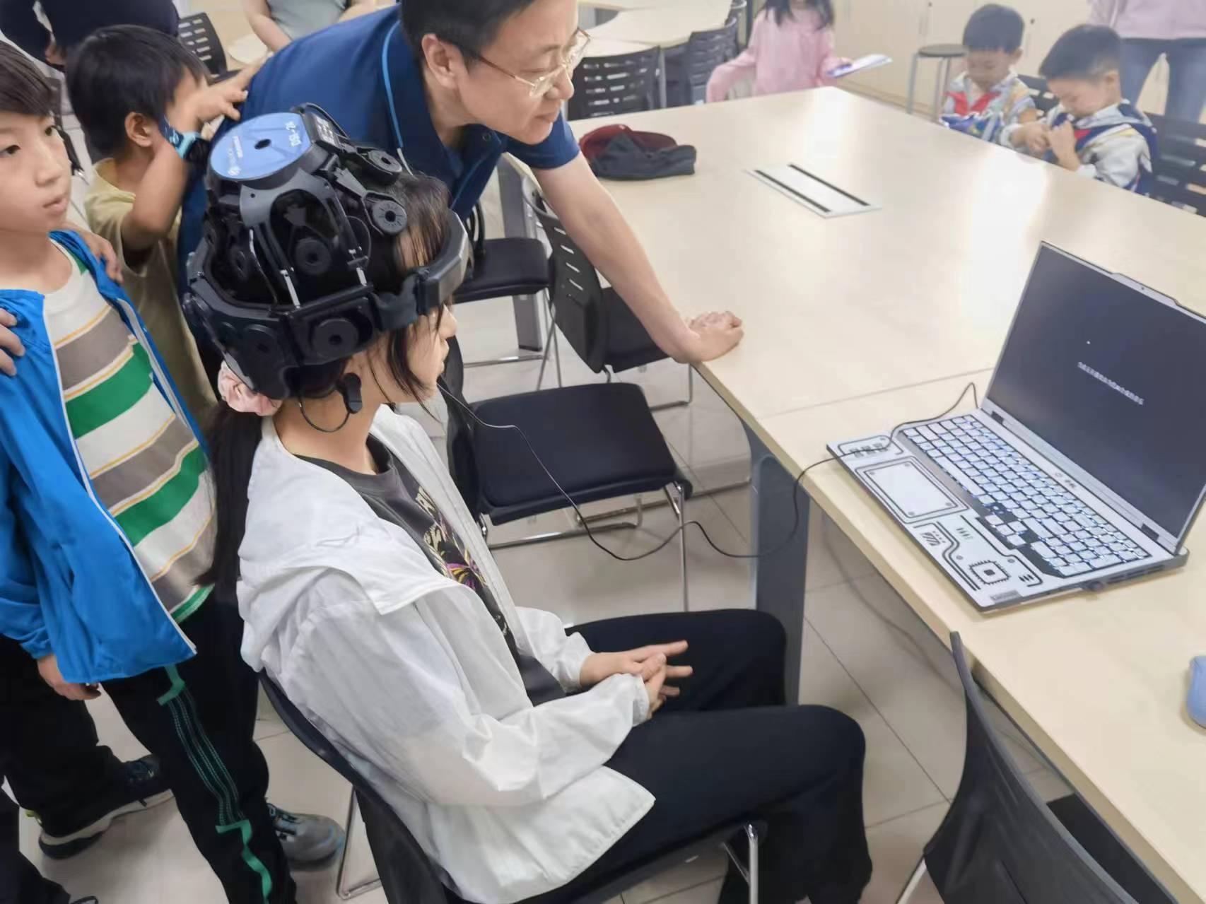6月1日儿童节当天,科普教育基地教师和老员工志愿者赴丰台区少年宫,携手丰台科协,和北理工、北邮、北信科等大学实验室一同开展了“智慧未来,童心探秘”的“6·1HIGH翻天”系列活动。科普基地展示了“AI+轨道运维”项目。这个面向老员工的实验项目,让中小学的孩子们初步了解了高铁轨道智能运维中涉及到的传感器、巡检系统、AI病害识别等科学知识,让孩子们沉浸在虚拟工作场景中,流连忘返。项目与少年宫科创项目紧密相连,开阔了孩子们的视野,萌发了创新和科技探索的种子。