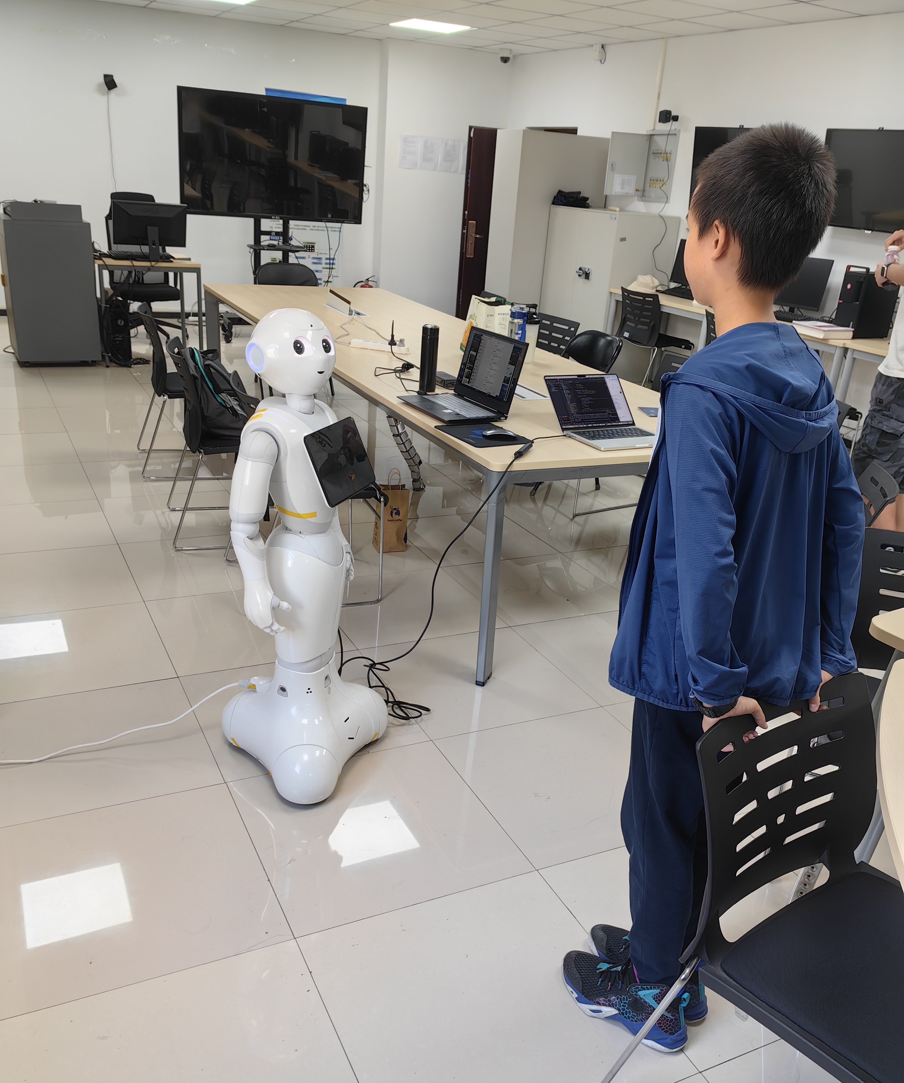 人工智能创新实验室是yl23455永利官网yl23455永利一个特色实验室,承担专业实验教学和科研任务。科技周期间,实验室(九教2层北206)开展了两个AI特色项目:基于脑机接口的生成式音乐创作,懂医学知识的Pepper机器人,受到同学们的欢迎。