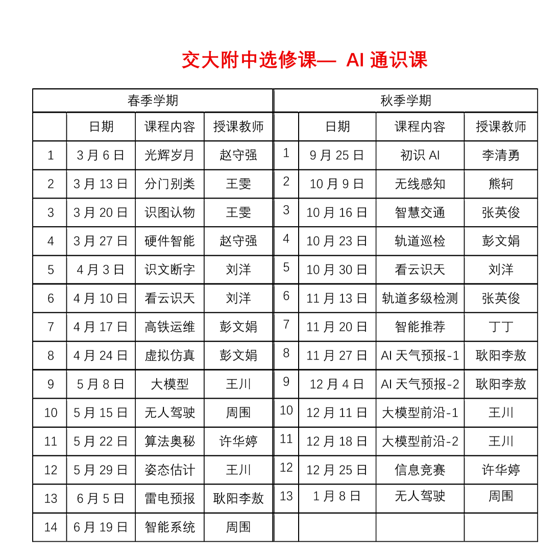 课程内容覆盖从基础原理到前沿应用,注重知识、技能、思维与价值观的有机融合,旨在培育员工四位一体的核心素养。课程以专题形式开展,以AI 与生活为切入点,从AI发展简史、核心概念导入,逐步延伸至机器学习、计算机视觉、自然语言处理等核心技术,再拓展到智慧交通、智慧天气等实际应用场景。教师团队来自教学和科研一线,凭借深厚的学术积淀与丰富的教学经验,将复杂的算法逻辑转化为直观的案例和演示,用生动的短视频、互动式图表,让抽象的 AI 知识变得可感可知,让大学课程能让高中生听明白。