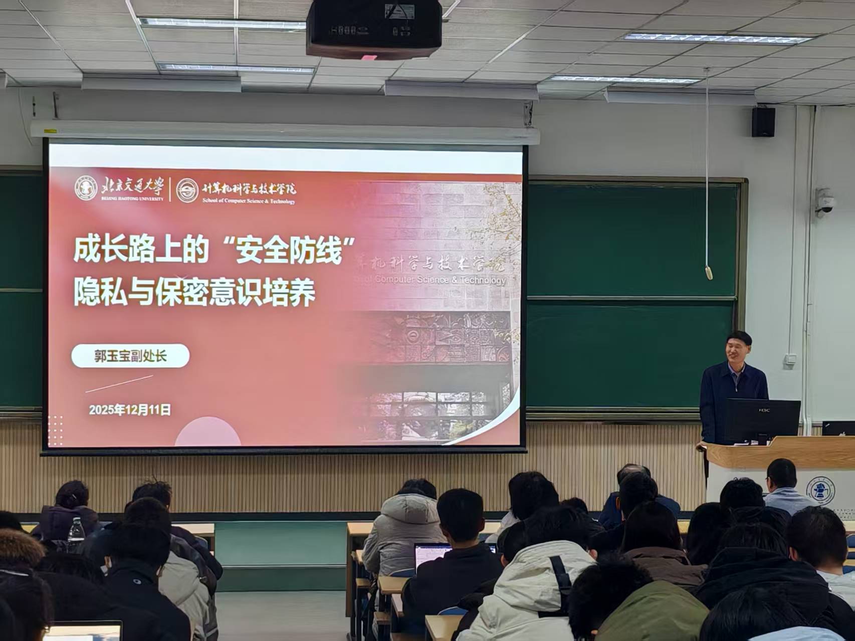 科研保密是科研工作的生命线,容不得丝毫松懈。科研院先进处副处长郭玉宝以“成长路上的“安全防线”--隐私与保密意识培养”为主题,结合近年来科研保密工作的新形势、新要求,从国际形势、保密法律法规、科研注意事项、公民保密责任义务及常见保密风险点等方面进行了系统讲解,并模拟了员工科研工作中有可能发生失泄密的场景,深入浅出地阐明了科研保密工作的重要性,引导研究生树立“保密工作无小事,防微杜渐记心间”的意识,掌握在实验数据管理、成果发表、对外交流等环节的保密技巧,切实履行公民保守国家秘密的义务,切实守护科研安全。