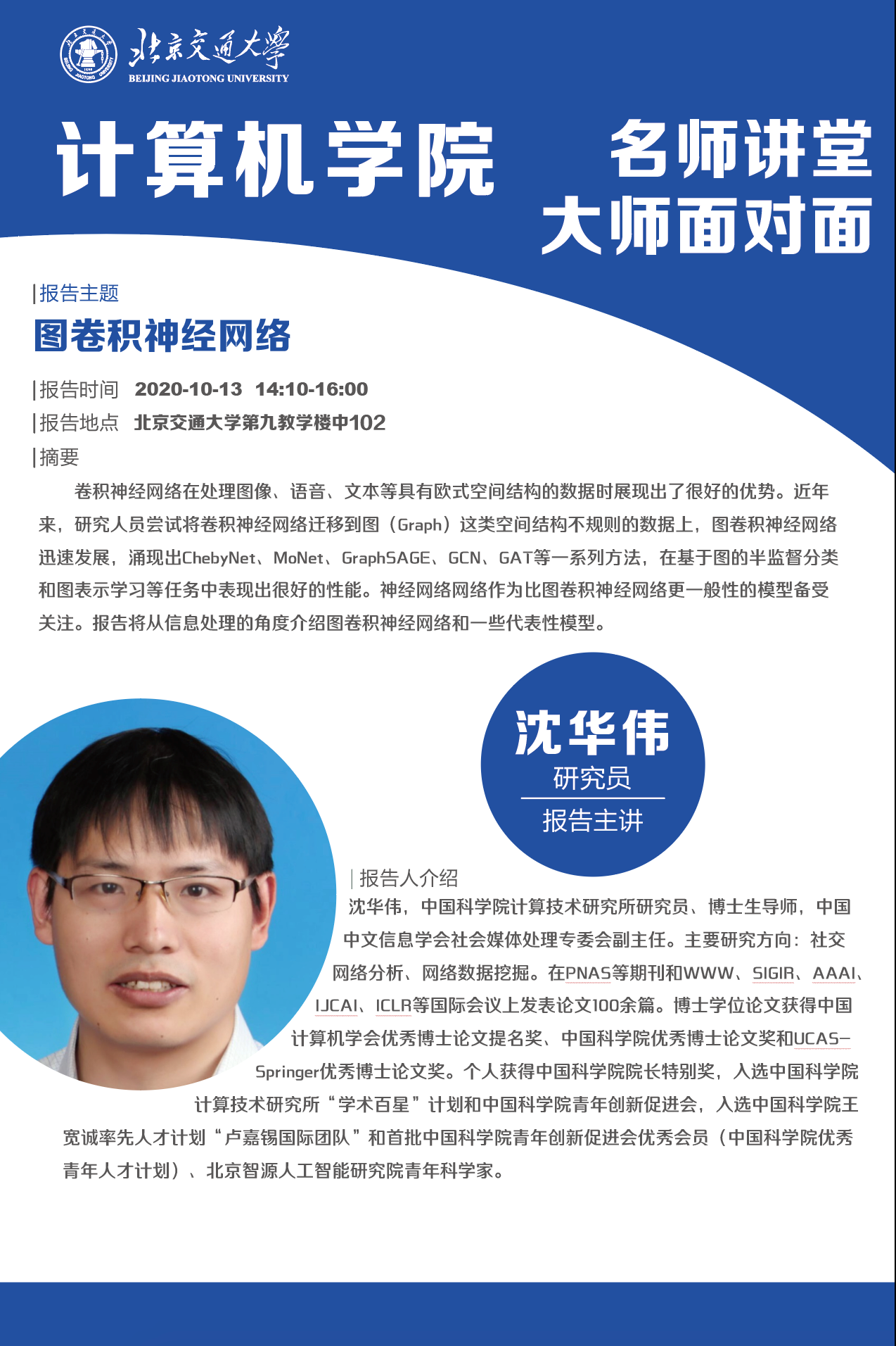 首页» 研究生教育» 通知公告» yl23455永利大师面对面预告2020.10.13-图卷积神经网络 yl23455永利大师面对面预告2020.10.13-图卷积神经网络 发布时间:2020-10-12 阅读次数:
