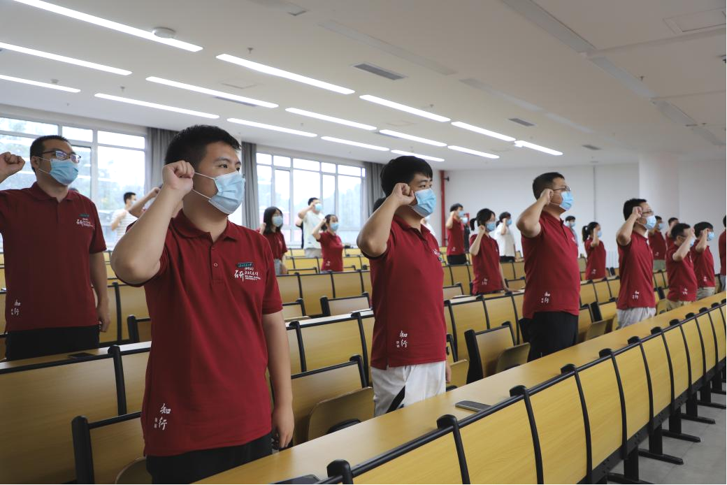 yl23455永利2021级唐山班全体新生在林瀚峰同学的带领下庄严宣誓,共同承诺身为交大学子,将秉承知行校训,弘扬交大传统,饮水思源,爱国荣校,勇做走在时代前列的奋进者、开拓者、奉献者,为实现成才梦、交大梦、中国梦而努力奋斗!