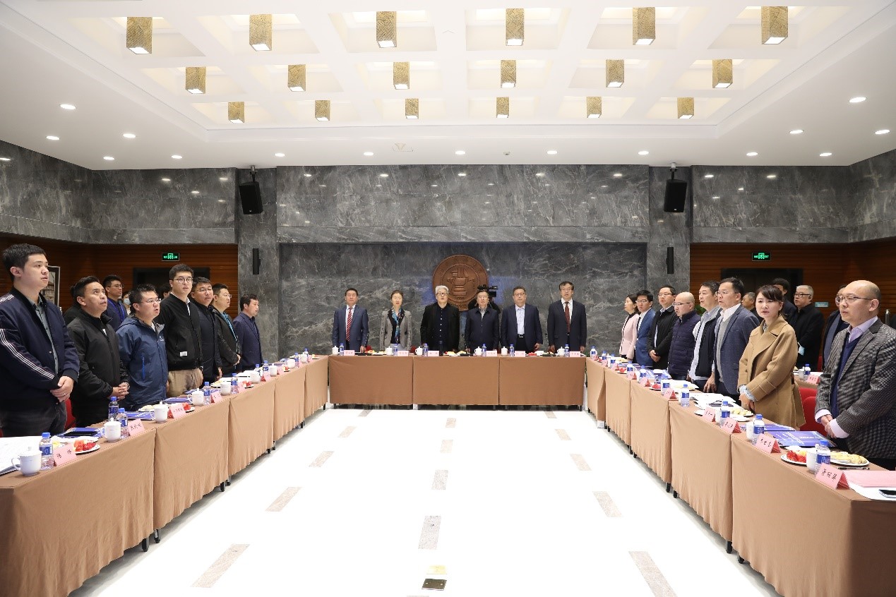随后,郭雪萌处长宣读公司员工总会的批复并为院友会第二届理事会会长杜林授旗,关忠良副董事长为各位理事会成员颁发聘书并合影。