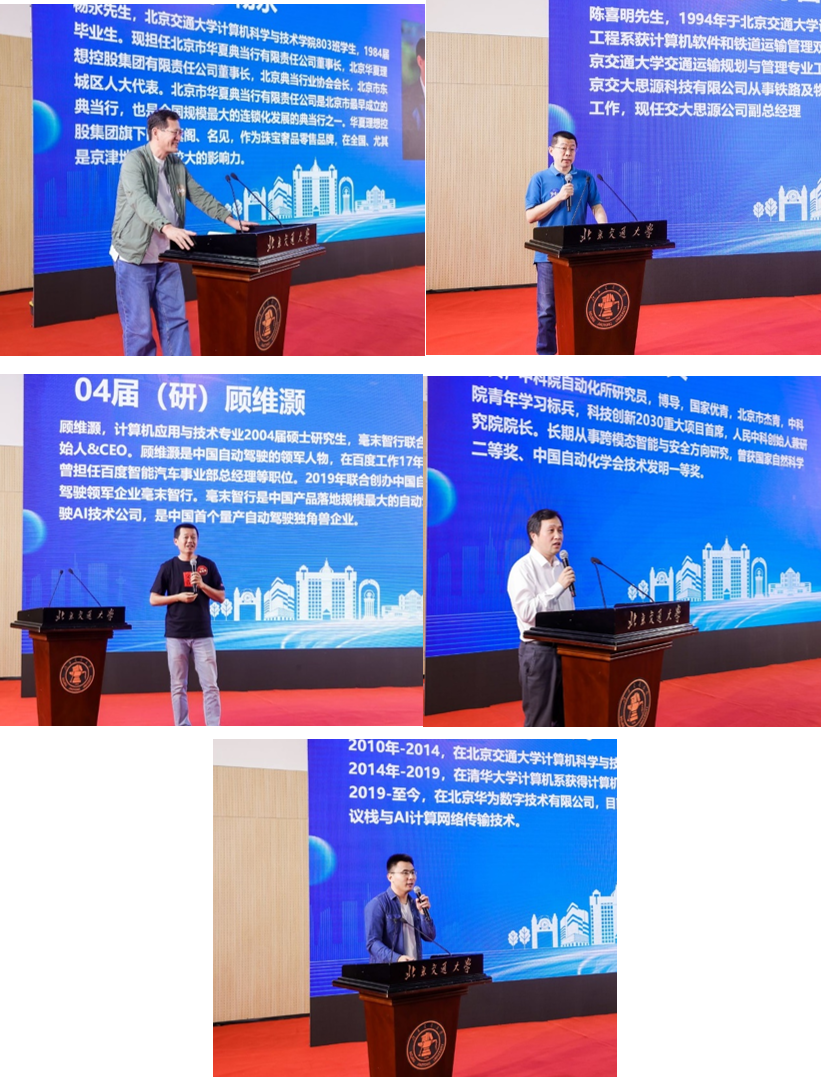 随后84届员工代表杨永,94届员工代表北京交大思源科技有限公司副总经理陈喜明04届员工代表毫末智行科技有限公司CEO顾维灏,04届员工代表中科院自动化所研究员、博导、国家优青李兵、14届员工代表来自华为的徐安民分别发言,回忆在交大生活的点滴,表达饮水思源的感恩之情。